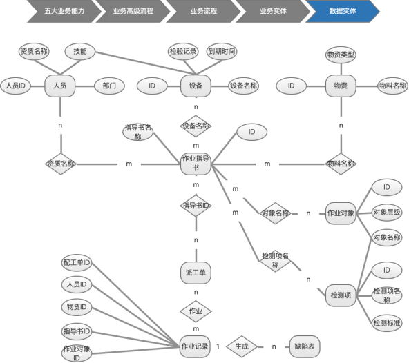在上述业务流程涉及到的业务实体如下图::::